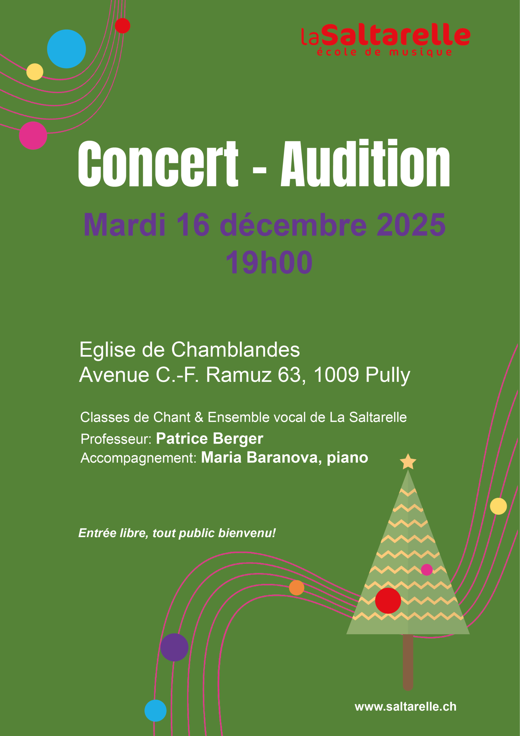 Apprendre à jouer d’un instrument à tout âge et découvrir le plaisir de la musique. C’est la philosophie de la Saltarelle, école de musique privée à Pully. Son point fort? La méthode d’initiation musicale Saltarinos développée par Catherine Lammers dans le but de donner le plaisir de la musique aux enfants. Des cours collectifs d’éveil musical (dès 3 ans) et d’initiation musicale (dès 5 ans) sont proposés, complétés par une palette de classes d’instruments sous l’enseignement de professeurs reconnus.
